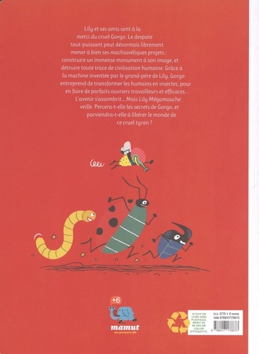 Lily et ses amis sont à la merci du cruel Gorgo. Le despote tout-puissant peut désormais librement mener à bien ses machiavéliques projets : construire un immense monument à son image, et détruire toute trace de civilisation humaine. Grâce à la machine inventée par le grand-père de Lily, Gorgo entreprend de transformer les humains en insectes, pour en faire de parfaits ouvriers travailleurs et efficaces... L'avenir s'assombrit... Mais Lily Mégamouche veille. Percera-t-elle les secrets de Gorgo, et parviendra-t-elle à libérer le monde de ce cruel tyran ?