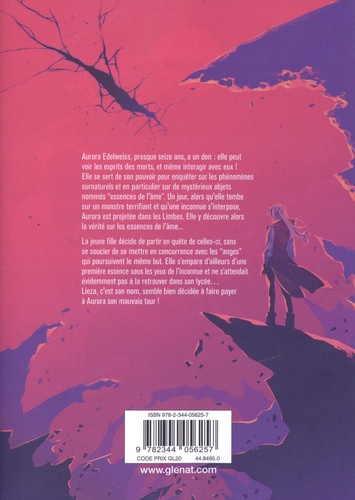 Aurora Edelweiss, presque seize ans, a un don : elle peut voir les esprits des morts, et même interagir avec eux ! Elle se sert de son pouvoir pour enquêter sur les phénomènes surnaturels et en particulier sur de mystérieux objets nommés "essences de l'âme". Un jour, alors qu'elle tombe sur un monstre terrifiant et qu'une inconnue s'interpose, Aurora est projetée dans les Limbes. Elle y découvre alors la vérité sur les essences de l'âme... Aurora décide de se mettre en quête de celles-ci, sans se soucier de se mettre en concurrence avec les "anges" qui poursuivent le même but. Elle pique d'ailleurs une première essence au nez à la barbe de l'inconnue et ne s'attendait bien sûr par à la retrouver dans son lycée... Lieza, c'est son nom, semble bien décidée à faire payer à Aurora son mauvais tour !