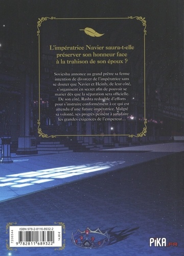 L'impératrice Navier saura-t-elle préserver son honneur face à la trahison de son époux ? Sovieshu annonce au grand prêtre sa ferme intention de divorcer de l'impératrice sans se douter que Navier et Heinly, de leur côté, s'organisent en secret afin de pouvoir se marier dès que la séparation sera officielle. De son côté, Rashta redouble d'efforts pour s'instruire conformément à ce qui est attendu d'une future impératrice. Malgré sa volonté, ses progrès peinent à satisfaire les grandes exigences de l'empereur...
