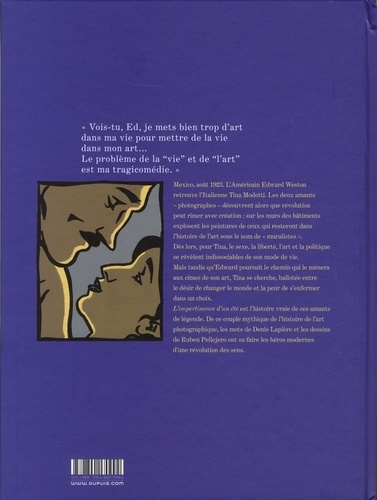 C'est l'été 1923 à Mexico. Edward Weston, photographe américain, abandonne sa famille pour rejoindre Tina Modotti, ancienne actrice aux origines italiennes reconvertie dans l'art pictural. Ensemble, ils s'engageront aux côtés des militants de l'art et vivront la révolution mexicaine de l'intérieur : c'est le temps où les opinions s'exposent sur les murs des bâtiments publics, où les peintres tels que Diego Rivera ou Xavier Guerrero prennent parti pour le peuple et la liberté, dont ils tracent les contours sur la toile gigantesque de la capitale. Entre leurs aspirations à des idéaux solidaires, le tourbillon d'un mouvement culturel unique et leurs luttes contre le pouvoir en place autant que contre eux-mêmes et leur entourage, les deux artistes éprouvent d'intenses déchirements. Mais que restera-t-il de ces fulgurances une fois venue la fin de l'été ? Dans "L'impertinence d'un été", ici dans sa première édition chez "Aire Libre", Denis Lapière évoque avec verve et chaleur le point de bascule que représentent les années 1920 dans l'histoire du Mexique. Servie par le trait élégant de Pellejero, l'actuel dessinateur de "Corto Maltese", qui seul parvient à faire danser l'âme bariolée de ce pays, cette double biographie est un brasier multicolore.