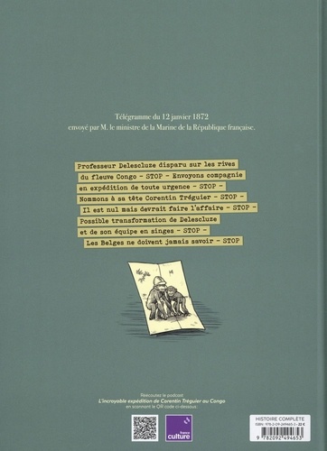 L'adaptation du podcast à succès de France Culture. Quand le professeur Delescluze, grand scientifique français, disparaît soudainement sur les rives du fleuve Congo, Corentin Tréguier, officier candide, est recruté sur un malentendu pour mener l'enquête. Il se pourrait en effet que le professeur se soit transformé... en singe ! Un désastre pour les Français qui risquent l'honneur de la Nation et leurs ambitions africaines... mais une aubaine pour les Belges qui y voient l'occasion de s'emparer du Congo ! Camille de Willers, une intrépide espionne belge, est alors dépêchée pour embarquer aux côtés de Corentin et déceler les secrets de cet étrange phénomène. Mais la forêt renferme bien des énigmes, et tous devront apprendre à voir au-delà des apparences... Tiré du podcast du même nom, podcast original de fiction en 10 épisodes, diffusés sur France Culture. Avec un cahier bonus rédigé par Emmanuel Suarez et Hamo en fin de BD pour raconter les coulisses de cette adaptation. Une BD qui éclaire avec sarcasme et réalisme la face cachée des expéditions françaises à l'ère coloniale.