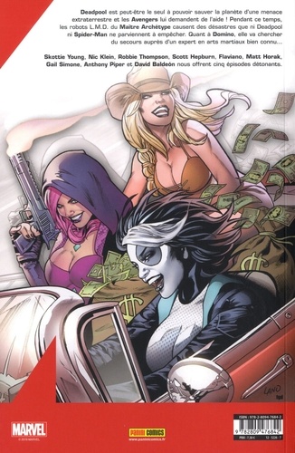 Deadpool est peut-être le seul à pouvoir sauver la planète d'une menace extraterrestre et les Avengers lui demandent de l'aide ! Pendant ce temps, les robots L.M.O. du Maitre Archétype causent des désastres que ni Deadpool ni Spider-Man ne parviennent à empêcher. Quant à Domino, elle va chercher du secours auprès d'un expert en arts martiaux bien connu... Gail Simone, Anthony Piper et David Baldeón nous offrent cinq épisodes détonants.
