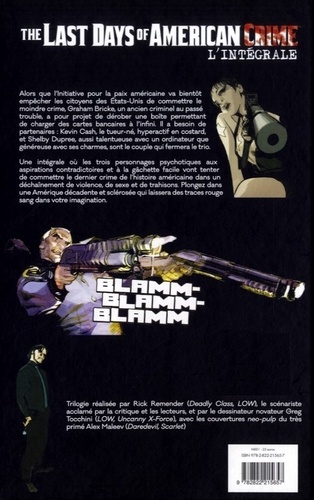 Alors que l'Initiative pour la paix américaine va bientôt empêcher les citoyens des Etats-Unis de commettre le moindre crime, Graham Bricke, un ancien criminel au passé trouble, a pour projet de dérober une boîte permettant" E. de charger des cartes bancaires à l'infini. Il a besoin de partenaires : Kevin Cash, le tueur-né, hyperactif en costard, et Shelby Dupree, aussi talentueuse avec un ordinateur que généreuse avec ses charmes, sont le couple qui fermera le trio. Une intégrale où les trois personnages psychotiques aux aspirations contradictoires et à la gâchette facile vont tenter de commettre le dernier crime de l'histoire américaine dans un déchaînement de violence, de sexe et de trahisons. Plongez dans une Amérique décadente et sclérosée qui laissera des traces rouge sang dans votre imagination.