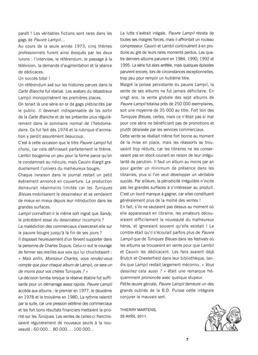 Nées dans la " Carte blanche " du Journal de Spirou en 1973, les mésaventures du Pauvre Lampil ont fait rire des générations de lecteurs, mais parfois aussi pleurer les auteurs de bande dessinée. Pourquoi ? Parce que Pauvre Lampil est la première bande dessinée qui décrit en bande dessinée, la vie des auteurs de bande dessinée.