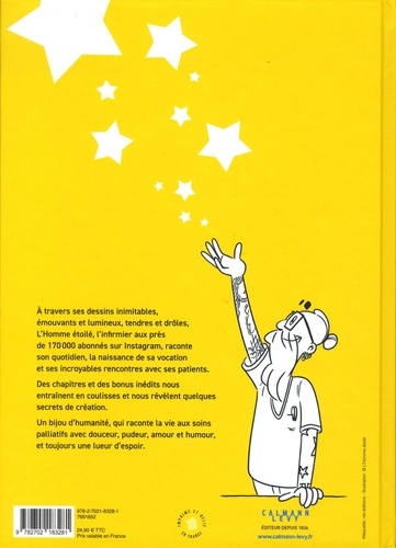A travers ses dessins inimitables, émouvants et lumineux, tendres et drôles, L'Homme étoilé, l'infirmier aux près de 170 000 abonnés sur Instagram, raconte son quotidien, la naissance de sa vocation et ses incroyables rencontres avec ses patients. Des chapitres et des bonus inédits nous entrainent en coulisses et nous révèlent quelques secrets de création. Un bijou d'humanité, qui raconte la vie aux soins palliatifs avec douceur, pudeur, amour et humour, et toujours une lueur d'espoir.