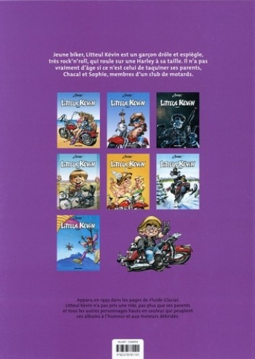Jeune biker, Litteul Kévin est un garçon drôle et espiègle, très rock'n'roll, qui roule sur une Harley à sa taille. Il n'a pas vraiment d'âge si ce n'est celui de taquiner ses parents, Chacal et Sophie, membres d'un club de motards.