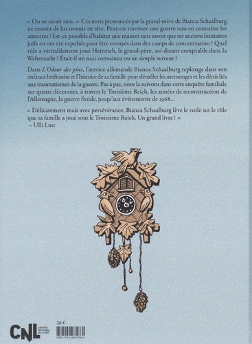 "On ne savait rien." Ces mots prononcés parla grand-mère de Bianca Schaalburg ne cessent de lui revenir en tête. Peut-on traverser une guerre sans en connaître les atrocités ? Est-ce possible d'habiter une maison sans savoir que ses anciens locataires juifs en ont été expulsés pour être envoyés dans des camps de concentration ? Quel rôle a véritablement joué Heinrich, le grand-père, soi-disant comptable dans la Wehrmacht ? Etait-il un nazi convaincu ou un simple suiveur ? Dans L'Odeur des pins, l'autrice allemande Bianca Schaalburg replonge dans son enfance berlinoise et l'histoire de sa famille pour démêler les mensonges et les dénis liés aux traumatismes de la guerre. Pas à pas, nous la suivons dans cette enquête familiale sur quatre décennies, à travers le Troisième Reich, les années de reconstruction de l'Allemagne, la guerre froide, jusqu'aux événements de 1968...