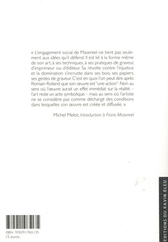 Après Capitale et Le soleil les Edtions du Ravin Bleu reéditent ici le troisième ouvrage non disponible de l'artiste graveur belge Frans Masereel. Pionnier du roman graphique voilà une histoire prenante sans parole tout en bois gravés. Ici l'histoire de la génèse d'une oeuvre, narration en 60 planches gravées comme l'autobiographie d'un artiste engagé à sculpter son oeuvre comme la notre, à coups de ciseaux à bois, pour nous frayer à tous un chemin de traverse vers cette liberté dont nous avons tant besoin.