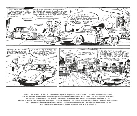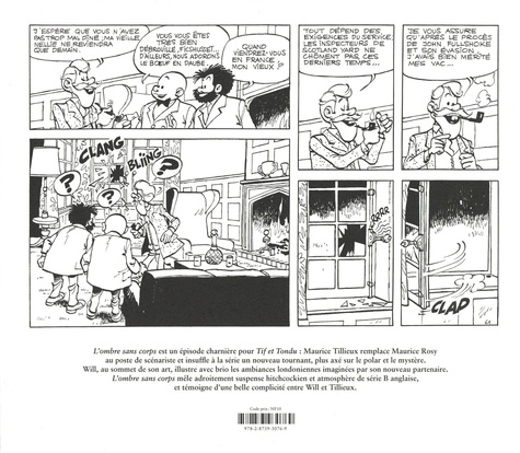 L'ombre sans corps est un épisode charnière pour Tif et Tondu : Maurice Tillieux remplace Maurice Rosy au poste de scénariste et insuffle à la série un nouveau tournant, plus axé sur le polar et le mystère. Will, au sommet de son art, illustre avec brio les ambiances londoniennes imaginées par son nouveau partenaire. L'ombre sans corps mêle adroitement suspense hitchcockien et atmosphère de série B anglaise, et témoigne d'une belle complicité entre Will et Tillieux.