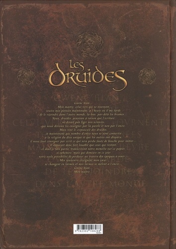Gwenc'hlan... Mon maître, celui vers qui se tournent toutes mes pensées maintenant, à l'heure où il me tarde de le rejoindre dans l'autre monde, là-bas, par-delà les brumes... Nous, druides, pensions à raison que l'écriture ne devait pas figer nos sciences, que nous devions les enseigner par la parole et non par l'encre. Mais vint le crépuscule des druides, et maintenant que nombre d'entre nous se sont convertis à la religion du dieu unique et que les autres ont disparu, il nous faut consigner par écrit ce qui sera perdu faute de bouche pour initier... Il apparaît donc fort louable que ceux restent, et dont je fais partie, transcrivent notre mémoire sur ce papier, si éphémère, mais qui demeure en ce jour notre seule possibilité de perdurer au travers des époques à venir... Mes souvenirs étreignent mon coeur, se changent en larmes et mes larmes se mêlent à l'encre... Gwenc'hlan... Mon maître...