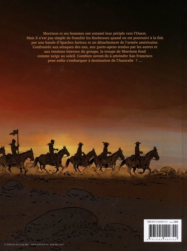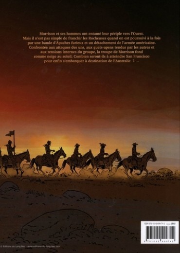 Morrison et ses hommes ont entamé leur périple vers l'Ouest. Mais il n'est pas simple de franchir les Rocheuses quand on est poursuivi à la fois par une bande d'Apaches furieux et un détachement de l'armée américaine. Confrontée aux attaques des uns, aux guets-apens tendus par les autres et aux tensions internes du groupe, la troupe de Morrison fond comme neige au soleil. Combien seront-ils à atteindre San Francisco pour enfin s'embarquer à destination de l'Australie ?...
