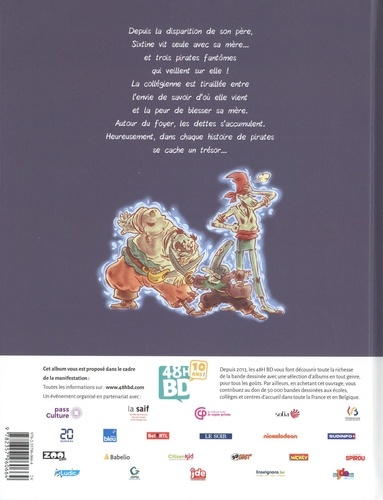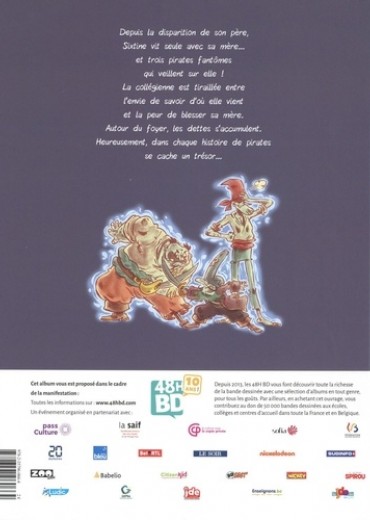 Depuis la disparition de son père, Sixtine vit seule avec sa mère... et trois pirates fantômes qui veillent sur elle ! La collégienne est tiraillée entre l'envie de savoir d'où elle vient et la peur de blesser sa mère. Autour du foyer, les dettes s'accumulent. Heureusement, dans chaque histoire de pirates se cache un trésor...