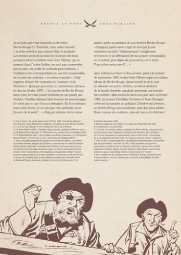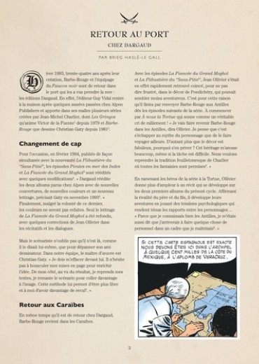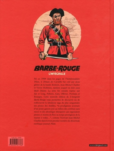 Né en 1959 dans les pages de l'hebdomadaire Pilote, le Démon des Caraïbes fut créé par deux génies de la bande dessinée, Jean-Michel Charlier et Victor Hubinon, tandem auquel on doit aussi Buck Danny. La série fut ensuite reprise par Jijé et Lorg, Pellerin, Gaty, Olivier, Perrissin et Bourgne. Cette nouvelle édition de L'intégrale Barbe-Rouge vous permettra de découvrir ou de redécouvrir la fabuleuse saga du plus sanguinaire des pirates des Antilles, "la prodigieuse aventure d'un jeune garçon jeté au milieu des combats sans merci et des abordages désespérés qui opposaient pirates et marins du Roy au temps prestigieux de la marine à voiles...", comme l'écrivait Jean-Michel Charlier dans le tout premier numéro du désormais mythique journal Pilote.