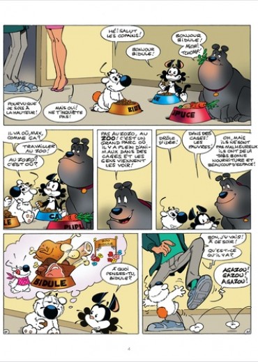 Trois albums plus tard, le remuant neveu de Cubitus est devenu un habitué de la clinique vétérinaire de Max et Louise. Tellement habitué, en fait, qu’il prend ses aises, au grand déplaisir de ses maîtres. En effet, ces derniers n’apprécient que modérément de voir leur salon transformé en patinoire ou le premier groupe de rock entièrement animalier répéter à trois heures du matin ! La solution : emmener Bidule au zoo, pour lui rappeler que la loi de la jungle n’a pas grand chose à voir avec celle du jardin !