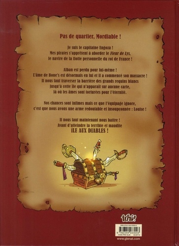 Sur les traces d'un trésor maudit ! Pour retrouver le fabuleux trésor de l'île aux diables, le stratagème élaboré par le capitaine Engoza est implacable : il a fait boire à Alban la fiole contenant l'âme de son ancien partenaire, le cruel Bone's ! Le jeune garçon, possédé par l'esprit du sanguinaire capitaine pirate, pourra désormais révéler l'information qui manque à Engoza pour atteindre le précieux coffre perdu dans cette île maudite des Caraïbes... Mais Engoza doit rester sur ses gardes, la flotte personnelle du Roi de France est à ses trousses, sans parler de la jeune Louise qui semble cacher un important secret à même de contrecarrer son plan si bien huilé...