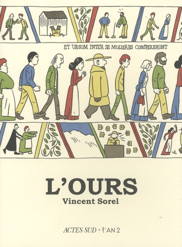 Un petit village de montagne, en hiver. Barnabé, le bûcheron, est tué par un ours. Ce dernier le dépouille de sa peau, s'en revêt et adopte également les habits du défunt. Quand il pénètre dans le village, personne ne remarque la substitution. Cependant l'ours manifeste rapidement une vive attirance pour les villageoises, qui ne sont pas non plus insensibles à sa mâle puissance. Il en résulte que les hommes sont cocufiés l'un après l'autre. Personnage mutique et taciturne, le faux Barnabé devient le révélateur de conflits longtemps tus, auxquels il ne comprend pas grand-chose. La tension s'exacerbe au sein de la petite communauté rurale, et l'ours, inévitablement, servira de bouc émissaire. Vincent Sorel signe une fable intemporelle, cocasse et pleine de charme, dessinée dans un style qui rappelle celui de l'école du New Yorker et sous une couverture pastichant la tapisserie de Bayeux. Ce récit charrie des échos des temps anciens (l'époque mérovingienne), quand l'ours était considéré comme le roi des animaux et était sexuellement très valorisé parce qu'on le tenait pour le seul animal à pratiquer le coït de face, comme l'homme. Vincent Sorel est un ancien élève de l'Ecole des Arts décoratifs de Strasbourg. Il a collaboré au site numo. fr L'ours est son premier livre.