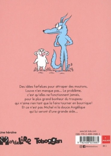 Des plans machiavéliques pour attraper des moutons, l'imaginative Louve n'en manque pas ! En revanche, pour ce qui est de la réalisation, c'est souvent bien moins simple : maladroite, impatiente et facilement attendrie, Louve est régulièrement la risée de tout le troupeau, qui prend un malin plaisir à faire gentiment tourner en bourrique leur prédatrice malheureuse, qu'au fond, ils adorent. De tentatives farfelues en hilarants échecs, Louve peut compter sur des alliés plus ou moins utiles, comme son camarade Michel ou Angélique, le mouton qui veut à tout prix l'aider, mais doit aussi faire face à des ennemis plus effrayants qu'elle, comme l'ours ou le chien de berger. Un second tome au sein duquel les scénaristes Armand Robin et Marie Manand se sont amusés une fois de plus à placer leur attendrissante héroïne dans les situations les plus loufoques ! Des gags courts d'une à trois pages mis en scène avec efficacité et expressivité par la talentueuse Caroline Hue, à déguster sans modération !