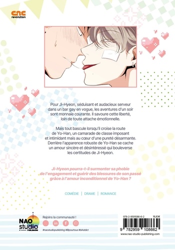 Pour Ji-Hyeon, séduisant et audacieux serveur dans un bar gay en vogue, les aventures d'un soir sont monnaie courante. Il savoure cette liberté, loin de toute attache émotionnelle. Mais tout bascule lorsqu'il croise la route de Yo-Han, un camarade de classe imposant et intimidant mais au coeur d'une pureté désarmante. Derrière l'apparence robuste de Yo-Han se cache un amour sincère et désintéressé qui bouleverse les certitudes de Ji-Hyeon. Ji-Hyeon pourra-t-il surmonter sa phobie de l'engagement et guérir des blessures de son passé grâce à l'amour inconditionnel de Yo-Han ?
