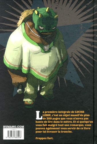 La première intégrale de LUCHA LIBRE, c'est un objet massif de plus de 300 pages que vous n'aurez pas honte de lire dans le métro. Et si quelqu'un vous fait malgré tout une remarque, vous pouvez également vous servir de ce livre pour lui écraser la tronche. Frappez fort.