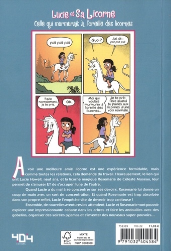 Avoir une meilleure amie licorne est une expérience formidable, mais comme toutes les relations, cela demande du travail. Heureusement, le lien qui unit Lucie Howell, neuf ans, et la licorne magique Rosemarie de Céleste Museau, leur permet de s'amuser ET de s'occuper l'une de l'autre. Quand Lucie a du mal à se concentrer sur ses devoirs, Rosemarie lui donne un coup de main avec un sort de concentration. Et quand Rosemarie est trop absorbée dans son propre reflet, Lucie l'empêche vite de devenir trop vaniteuse ! Ensemble, de nouvelles aventures les attendent. Lucie et Rosemarie vont pouvoir explorer une impressionnante cabane dans les arbres et faire les andouilles avec des gobelins, organiser des soirées pyjamas et s'inventer des nouveaux super-pouvoirs...