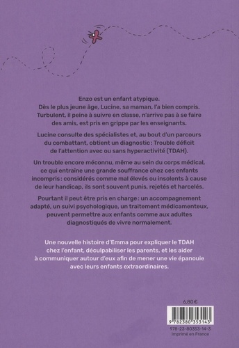 Enzo est un enfant atypique. Dès le plus jeune âge, Lucine, sa maman, l'a bien compris. Turbulent, il peine à suivre en classe, n'arrive pas à se faire des amis, est pris en grippe par les enseignants. Lucine consulte des spécialistes et, au bout d'un parcours du combattant, obtient un diagnostic : Trouble déficit de l'attention avec ou sans hyperactivité (TDAH). Un trouble encore méconnu, même au sein du corps médical, ce qui entraîne une grande souffrance chez ces enfants incompris : considérés comme mal élevés ou insolents à cause de leur handicap, ils sont souvent punis, rejetés et harcelés. Pourtant il peut être pris en charge : un accompagnement adapté, un suivi psychologique, un traitement médicamenteux, peuvent permettre aux enfants comme aux adultes diagnostiqués de vivre normalement.