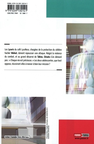 Les Lycoris du café LycoReco ont été engagées pour une mission particulière : protéger le célèbre hacker Walnut. Malgré tous leurs efforts, Chisato et Takina perdent rapidement le contrôle de la situation. Leur mission s'achèvera-t-elle dans un bain de sang ? Convoquées au quartier général par la commandante Kusunoki, les deux adolescentes à la réputation de têtes brûlées, vont faire face à deux collègues : Fuki et Sakura. Les tensions montent et Takina accuse le coup d'une révélation, expliquant sa réintégration tant attendue. Diffusé sur Crunchyroll durant l'été 2022, Lycoris Recoil a fait grand bruit dans la communauté des fans d'anime. Réalisée par A-1 Pictures, la série a immédiatement séduit le public par sa qualité d'animation, son scénario captivant et ses personnages aussi attachants que puissants. L'oeuvre a tellement eu de succès qu'un nouveau projet d'anime est prévu autour de cette licence. Deux ans après sa diffusion sur la plateforme, Panini propose l'adaptation manga dessinée par Bizen Yasunori. L'artiste a parfaitement su capter ce qui faisait les qualités de l'anime pour créer une version papier tout aussi palpitante et prenante. Avec son rythme effréné, ses personnages mémorables et son scénario aux multiples rebondissements, ce titre comblera les fans de l'anime qui rallieront des lecteurs curieux de découvrir une licence, si chaleureusement recommandée.