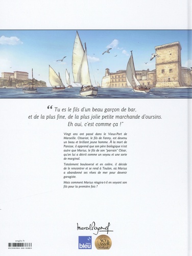 "Tu es le fils d'un beau garçon de bar, et de la plus fine, de la plus jolie petite marchande d'oursins. Eh oui, c'est comme ça ! " Vingt ans ont passé dans le Vieux-Port de Marseille. Césariot, le fils de Fanny, est devenu un beau et brillant jeune homme. A la mort de Panisse, il apprend que son père biologique n'est autre que Marius, le fils de son parrain César, qu'on lui a décrit comme un voyou et une sorte de marginal. Totalement bouleversé et en colère, il décide de le rencontrer et se rend à Toulon, où Marius a abandonné ses rêves de mer pour devenir garagiste. Mais comment Marius réagira-t-il en voyant son fils pour la première fois ?