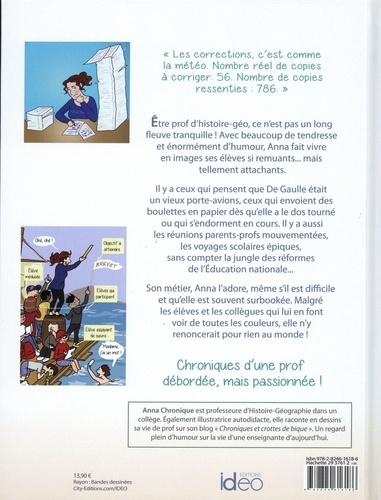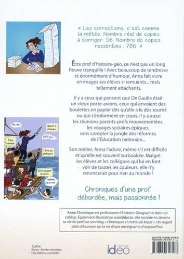 Etre prof d'histoire-géo, ce n'est pas un long fleuve tranquille ! Avec beaucoup de tendresse et énormément d'humour, Anna fait vivre en images ses élèves si remuants... mais tellement attachants. Il y a ceux qui pensent que De Gaulle était un vieux porte-avions, ceux qui envoient des boulettes en papier dès qu'elle a le dos tourné ou qui s'endorment en cours. Il y a aussi les réunions parents-profs mouvementées, les voyages scolaires épiques, sans compter la jungle des réformes de l'Education nationale... Son métier, Anna l'adore, même sil est difficile et qu'elle est souvent surbookée. Malgré les élèves et les collègues qui lui en font voir de toutes les couleurs, elle n'y renoncerait pour rien au monde !