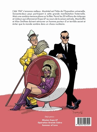 L'été 1967 s'annonce radieux. Montréal est l'hôte de l'Exposition universelle. Soixante-deux pays participent à cette grande manifestation fraternelle. Mais une sombre menace plane sur la fête. Parmi les 50 millions de visiteuses et visiteurs qui sillonneront Expo 67 au cours de la saison estivale, MacGuffin et Alan Smithee doivent retrouver un homme porteur d'un terrible secret et éviter que le monde sombre dans un chaos nucléaire.
