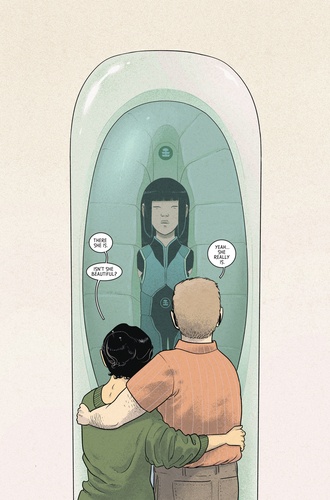Jesse, une coréenne de neuf ans, est adoptée par un charmant couple d'américains. Elle est socialement maladroite mais possède une mémoire encyclopédique pour la simple et bonne raison que c'est un robot ultraréaliste. Mais ses parents ignorent que Jesse est un modèle expérimental : la toute première véritable intelligence artificielle. Pour la petite fille, c'est le début d'un voyage mouvementé à travers toutes les facettes de son identité. Avec ce récit de science-fiction, les auteurs Jeremy Holt (non-binaire et asiatique) et George Schall (non-binaire et trans) proposent une métaphore frappante du sentiment d'aliénation que peuvent ressentir les minorités (raciales ou de genre). L'écriture et le style graphique tirent le comic book dans la même direction : celle d'une oeuvre de la scène indé qui peut être mis dans toutes mains et pas seulement dans celles des fans de comics. Le titre est ainsi proposé dans notre collection Panini Graphic Novels qui adapte le format à chaque ouvrage et qui propose ainsi Made in Korea dans un écrin à la couverture soft touch du plus bel effet.