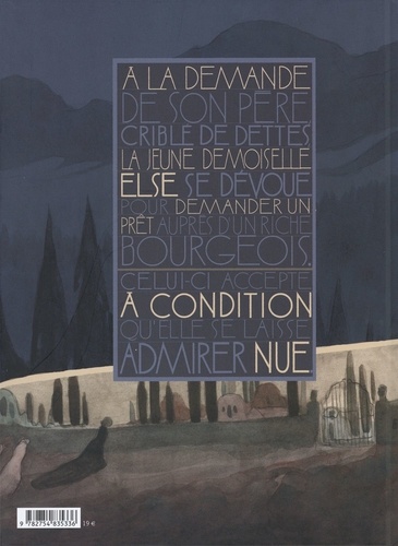 Jeune Viennoise, issue de la bourgeoisie, en villégiature avec sa tante et son cousin Paul dans un palace en Italie, Mademoiselle Else apprend par courrier que son père est menacé de prison pour dette. Pour le sauver du déshonneur, sa mère lui demande dans cette lettre de solliciter Dorsday, un riche marchand d'art, afin de récupérer la somme demandée. L'étrange Dorsday propose un marché à la jeune fille : il accepte de prêter la somme nécessaire, mais à la seule condition que la jeune fille se dévête devant lui. La transposition en images de l'univers psychologique complexe et tourmenté d'Arthur Schnitzler devient pour Manuele Fior un défi relevé avec maestria, démontrant ainsi non seulement qu'une telle transposition est possible, mais qu'elle peut également être parfaitement réussie lorsque l'adaptateur se montre aussi inventif que l'oeuvre qu'il transpose. Inspiré par l'Art nouveau, Mucha, Klimt et Schiele, Manuele Fior fait revivre le texte de l'écrivain autrichien paru en 1924 et son époque.
