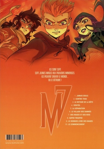 Ils étaient sept : le Spirite, l'Alchimiste, l'Enchanteur, le Télépathe, la Démoniste, le Devin et le Shaman. Sept adolescents dotés de dons surnaturels uniques qu'ils avaient du mal à comprendre et à maîtriser. Jusqu'au jour où ils ont eu à opérer un choix : garder leur pouvoir... ou l'abandonner ! 16 ans plus tard, Léo, 28 ans, est devenu un escape artist comme son modèle Houdini. Ayant renoncé à ses pouvoirs de spirite, il doit réaliser ses tours sans l'aide de son glorieux aîné. Il fuit sa famille, car son père, Nathaniel Lang, est devenu président et, fort de son pouvoir de télépathe qui lui permet de manipuler les adultes, il s'apprête à déclarer la guerre à d'autres pays. Hamelin, le Shaman, règne d'une poigne de fer sur son royaume d'Amazonie ; Farah, la Démoniste, est devenue reine d'Europe centrale ; Lupe, l'Alchimiste, imagine des armes révolutionnaires qu'elle vend au plus offrant. Mais que s'est-il donc passé pendant ces seize années ? Que sont devenus les autres mages ? Et qu'en est-il des prédictions d'Alice qui annonçaient qu'un des mages trahirait les autres et qu'un autre mourrait ? Les réponses (surprenantes) dans ce tome 7 passionnant et déroutant !