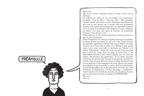 Et si le propre de l'homme était l'optimisme ? Ce petit traité de l'humoriste- magicien Eric Antoine sonne comme les clefs du bonheur qui ne sont jamais perdues. Désopilant, récréatif, philosophique et émouvant. Bon voyage ! Eric Antoine vous invite à l'accompagner partout – de sa loge de magicien à la philosophie d'Empédocle, et jusque dans...une crotte de pigeon ! Non conformiste, baroque et drôle, son petit traité offre un récit et un spectacle où il se raconte entre les souvenirs, les surprises et les tours. L'existence est une quête de sens et d'enseignements qu'on ne perçoit pas toujours. Lui, en magicien mentaliste, tient le bonheur à l'oeil. Il vous trompe pour vous plaire, vous bouscule par amitié. Sur sa route, les choses vues se mêlent à la spiritualité, aux paraboles de maîtres avec une fantaisie effervescente. La Pensée Magique existe. Grâce à elle, les galères, les épreuves ou le chagrin cèdent face à la décision d'être heureux. Le quotidien prend un sacré coup de jeune. Si un magicien vous tend sa baguette, n'hésitez plus : prenez-la... Les illustrations de Walter Glassof viennent souligner ce regard sur la vie plein d'humour, de pédagogie et de poésie.