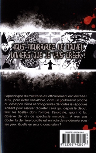 L'Apocalypse du multiverse est officiellement enclenchée ! Aussi, pour éviter l'inévitable, dans un soubresaut proche du désespoir, héros et antagonistes de toutes les époques s'allient pour essayer d'arrêter celui qui, depuis le début, tirait les ficelles dans l'ombre. L'exorciste, quant à lui, observe de loin ce spectacle morbide.... A n'en pas douter, la dernière bataille est en train de se dérouler sous ses yeux. Quelle en sera la conclusion ?