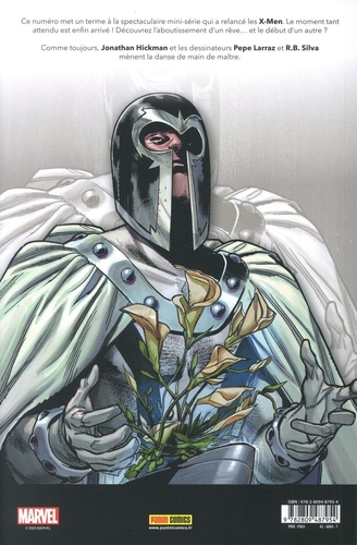 Ce numéro met un terme à la spectaculaire mini-série qui a relancé les X-Men. Le moment tant attendu est enfin arrivé ! Découvrez l'aboutissement d'un rêve... et le début d'un autre ? Comme toujours, Jonathan Hickman et les dessinateurs Pepe Larraz et R.B. Silva mènent la danse de main de maître.