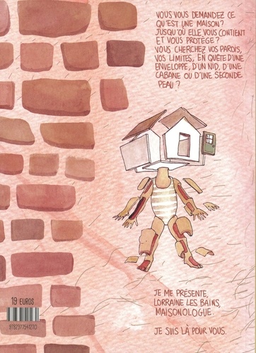 "Vous vous demandez ce qu'est une maison ? Jusqu'où elle vous contient et vous protège ? Vous cherchez vos parois, vos limites, en quête d'une enveloppe, d'un nid, d'une cabane ou d'une deuxième peau ? Je me présente, Lorraine Les Bains, maisonologue. Je suis là pour vous". L'autrice BD de Waldo revient avec émotion et moult documents d'archives sur son enfance, adolescence et autres étapes autobiographiques pour décortiquer ce "moi-maison" qui est au coeur de son oeuvre artistique. De sa maison d'enfance du Nord, au déménagement dans le Sud en passant par les cabanes d'enfants, apparts d'étudiants, maisons hantées, tiny houses ou encore ZAD, Lorraine Les Bains interroge avec humour, sensualité et illustrations immersives notre rapport à la maison, cette enveloppe quasi-corporelle qui nous protège, nous étouffe, nous accueille et nous définit de plus en plus.