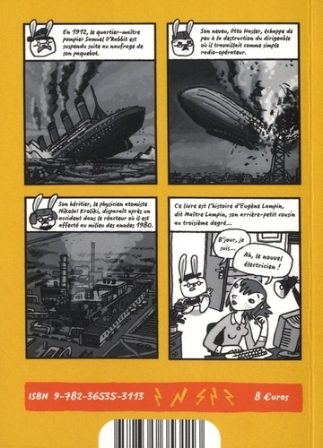 En 1912, le quartier-maître pompier Samuel O'Rabbit est suspendu suite au naufrage de son paquebot. Son neveu, Otto Hasler, échappe de peu à la destruction du dirigeable où il travaillait comme simple radio-opérateur. Son héritier, le physicien atomiste Nikolaï Kroliki, disparaît après un accident dans le réacteur où il est affecté au milieu des années 1980. Ce livre est l'histoire d'Eugène Lampin, dit Maître Lampin, son arrière-petit cousin au troisième degré...