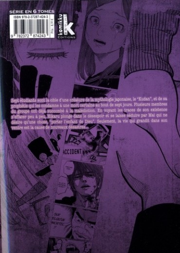 Leurs destins sont liés... par la Mort ! Angoisse et Horreur dans la veine du film Destination Finale ! Sept étudiants qui viennent de finir l'université reviennent d'un voyage pour célébrer la fin des cours. Mais ils heurtent quelque chose d'étrange sur la route : une créature ayant le corps d'un boeuf, mais un visage humain !! Ils viennent en fait de tuer un "Kudan', une créature mythologique japonaise qui est censée faire le bien. Peu après ce drame, un des étudiant voit la créature dans un rêve au cours duquel il apprend qu'il n'a plus qu'une semaine à vivre. Il n'y prête pas attention, mais 7 jours après, l'horloge d'un parc s'abat sur lui mystérieusement et le tue. Sa petite amie subit le même sort la semaine suivante. Les survivants comprennent alors qu'une terrible malédiction s'est enclenchée et que son issue leur sera fatale. Comment vont-ils y échapper ?