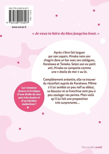 " Je veux te faire du bien jusqu'au bout. " Après s'être fait larguer par son copain, Hinako noie son chagrin dans un bar avec ses collègues, Korekawa et Tamako. Selon son ex-petit ami, Hinako se comporte comme une " étoile de mer " au lit. Complètement anéantie, elle va trouver du réconfort auprès de Korekawa. Même s'il lui semble un peu naïf au début, sa douceur et sa franchise vont peu à peu soulager ses peines. Mais voilà qu'il lui fait une proposition très surprenante... La romance douce et érotique d'une étoile de mer pas très douée et d'un héritier audacieux !