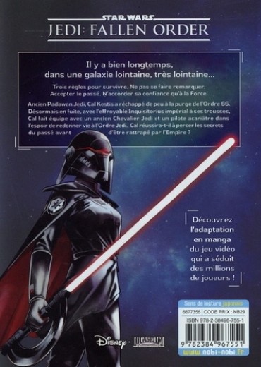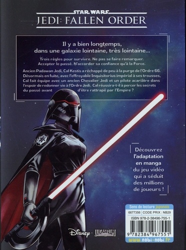 Il y a bien longtemps, dans une galaxie lointaine, très lointaine... Trois règles pour survivre. Ne pas se faire remarquer. Accepter le passé. N'accorder sa confiance qu'à la Force. Ancien Padawan Jedi, Cal Kestis a réchappé de peu à la purge de l'Ordre 66. Désormais en fuite, avec l'effroyable Inquisitorius impérial à ses trousses, Cal fait équipe avec un ancien Chevalier Jedi et un pilote acariâtre dans l'espoir de redonner vie à l'Ordre Jedi. Cal réussira-t-il à percer les secrets du passé avant d'être rattrapé par l'Empire ?