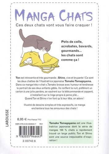 Ton est introvertie et très gourmande ; Shino, vive et bruyante ! Ce sont les deux chattes de l'illustratrice japonaise Tamako Tamagoyama. Dans ce manga très "chat", Tamako brosse avec humour et tendresse le portrait de ses deux enfants gâtés. Ils ronflent la nuit, préfèrent un carton à une jolie panière, se vautrent sur la télécommande et zappent, s'installent sur le linge propre à peine plié... Quand Ton et Shino n'en font qu'à leur tête, on adore ! Illustré de dessins simples et très expressifs, ce manga enchantera tous les amoureux des chats !