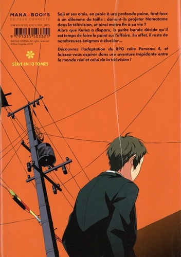 Découvrez l'adaptation du RPG culte Persona4, et laissez-vous aspirer dans une aventure trépidante entre le monde réel et celui de la télévision ! Soji et ses amis, en proie à une profonde peine, font face à un dilemme de taille : doivent-ils projeter Namatame dans la télévision, et ainsi mettre fin à sa vie ? Alors que Kuma a disparu, la petite bande décide qu'il est temps de faire le point sur l'affaire. En effet, il reste de nombreuses énigmes à élucider... Série terminée en 13 tomes.