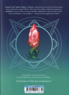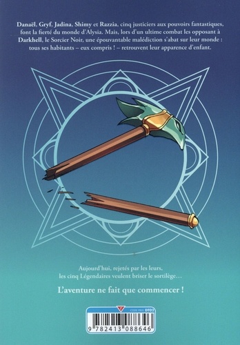 Danaël, Gryf, Jadina, Shimy et Razzia, cinq justiciers aux pouvoirs fantastiques, font la fierté du monde d'Alysia. Mais, lors d'un ultime combat les opposant à Darkhell, le Sorcier Noir, une épouvantable malédiction s'abat sur leur monde : tous ses habitants - eux compris ! - retrouvent leur apparence d'enfant. Aujourd'hui, rejetés par les leurs, les cinq Légendaires veulent briser le sortilège... L'aventure ne fait que commencer !