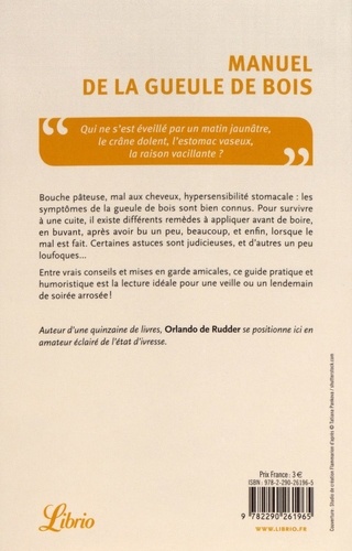 Bouche pâteuse, mal aux cheveux, hypersensibilité stomacale : les symptômes de la gueule de bois sont bien connus. Pour survivre à une cuite, il existe différents remèdes à appliquer avant de boire, en buvant, après avoir bu un peu, beaucoup, et enfin, lorsque le mal est fait. Certaines astuces sont judicieuses, et d'autres un peu loufoques... Entre vrais conseils et mises en garde amicales, ce guide pratique et humoristique est la lecture idéale pour une veille ou un lendemain de soirée arrosée !