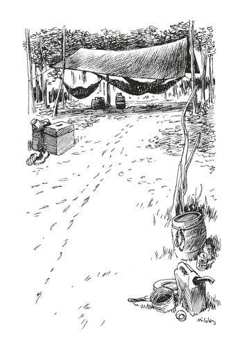 Deux auteurs de bande dessinée peuvent-ils survivre dans la jungle ? Partis quelques jours en pleine forêt guyanaise avec deux copains baroudeurs, Joub et Nicoby font leur retour aux sources. Chasse, bivouac, cueillette, excursions et trouille bleue s'inscrivent au programme de ce reportage qui conduit nos deux auteurs au coeur d'une nature certes exubérante (et non sans danger pour le distrait), mais aussi de plus en plus menacée par l'homme et son exploitation déraisonnée des ressources. Au cours de leurs pérégrinations, racontées avec humour, Joub et Nicoby apprennent à connaître les bruits de la nuit dans la jungle, mais se trouvent aussi confrontés à des réalités dérangeantes, telles que l'extraction clandestine d'or dans une zone censément protégée, mais qui est en fait gangrénée par un trafic dont les hommes sont les premières victimes. Un récit complexe, traversé de problématiques très actuelles sur le statut de la vie sauvage dans un monde moderne qui lui laisse de moins en moins de place, et magnifié par la beauté de paysages saisis sur le vif.