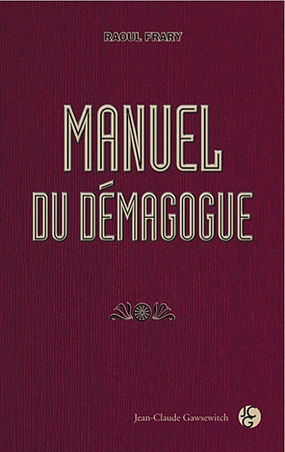 Nombre d'hommes politiques usent de démagogie pour se faire élire. Mais il n'est pas interdit à tout un chacun d'utiliser ce procédé dans la vie de tous les jours pour se faire remarquer, aimer, pour conquérir un auditoire... Ce Manuel du démagogue édité sous la IIIème République s'adressait à un jeune homme destiné à embrasser la carrière politique. Il demeure pourtant d'une grande actualité et peut servir en toute occasion. A la fois érudit et pratique, truffé de références à la Révolution française, ce petit bijou de science politique est un manuel de mauvaise foi.