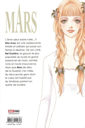 Kira Asou est une jeune fille très timide qui passe son temps à dessiner. Un jour, elle rencontre Rei Kashino, un voyou, amateur de courses de moto, qui s'attire toujours des problèmes, et qui est très populaire auprès des filles. Derrière ce tempérament fougueux, Kira réussit à entrevoir une personne attachante. Elle découvre peu à peu son passé et au fur et à mesure du temps qu'ils passent ensemble, les deux jeunes gens tombent amoureux. Mais leur romance s'annonce passionnée et chaotique tant ils sont différents l'un de l'autre. Ils vont devoir s'apprivoiser, se comprendre et s'accepter. Et ce ne sera pas facile. Soryô Fuyumi est une mangaka dont la renommée n'est plus à faire. Tout commence alors qu'elle décide de participer à un concours organisé par l'éditeur Shogakukan, pour le magazine Bessatsu Shôjo Comic afin de financer ses études de mode. Décrochant la 10e place, elle va finir par ne plus quitter ce milieu. C'est en mars 1982 qu'elle publie sa première histoire dans le Bessatsu Shôjo Comic. Il s'agit de Hidamari no Hômonsha. Mais c'est avec sa série Boyfriend qu'elle se fera connaître en gagnant notamment le 33e prix Shogakukan en 1988. Elle consolide sa réputation avec l'excellent Mars qui fera d'elle une autrice reconnue dans la sphère shôjo. Par la suite, elle enchaîne les séries à succès comme Eternal Sabbath et Cesare. Cette nouvelle édition de MARS s'inscrit dans la même lignée que les autres Perfect Edition (City Hunter, Yasha etc) et sera présentée en huit tomes. Soulignons que la partie édito et la traduction ont été entièrement retravaillées.