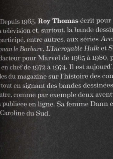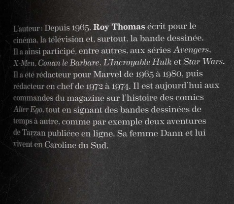 C'était l'époque des héros puissants, des monstres incompris et des méchants à la psychologie complexe. Lorsqu'il publie le premier numéro de Fantastic Four, en novembre 1961, le géant de la bande dessinée Marvel inaugure une période de mutation de la culture populaire. Au cours des 20 années suivantes, les illustres Hulk, Spider-Man, Iron Man et X-Men ont bondi, fusé et volé entre ses pages. Il a tiré Captain America des frigos de l'histoire où il était reclus depuis les années 1940 et fait des Avengers la meilleure équipe de super-héros au monde. Daredevil, Doctor Strange et des dizaines d'autres se sont ajoutés à son panthéon, avec leur propre aréopage d'adversaires malveillants. Plus de 50 années plus tard, ces personnages enthousiasmants nés dans les années 1960 et 1970 sont plus populaires que jamais, toujours prêts à se battre, dans les magazines, les magasins de jouets et les films à gros budget du monde entier. Dans L'ère des comics Marvel 1961-1978, le légendaire auteur et éditeur Roy Thomas vous transporte au coeur de cette étape charnière de l'histoire des comics, une ère d'innovation triomphale dans le domaine de la narration et des personnages au cours de laquelle le super-héros s'est réinventé en tant que genre. A travers des centaines d'images et de témoignages de première main, le livre retrace la naissance de héros mythiques par leurs pouvoirs et leurs adversaires, mais ancrés dans un monde similaire à celui que connaissaient les lecteurs, des héros avec leurs problèmes, leurs batailles à mener et leurs défauts, comme n'importe qui, auxquels ils pouvaient s'identifier. On voit aussi comment, dans les années 1970, la machine à idées qu'est Marvel a intégré l'horreur, l'heroic fantasy et les arts martiaux à son écurie de demi-dieux titanesques, avec des personnages emblématiques comme l'Homme-Chose, Conan et Shang-Chi, prouvant ainsi que leur manière de raconter les histoires pouvait se dupliquer avec succès, sans capes ni combinaisons moulantes. On apprend aussi à connaître les extraordinaires architectes de Marvel, dont les noms sont presque aussi connus que les mortels et immortels auxquels ils ont donné la vie : Stan "The Man" Lee, Jack "King" Kirby et Steve Ditko, en compagnie d'autres grands du genre comme John Romita, John Buscema, Marie Severin, Jim Steranko. L'ensemble compose une exploration excitante des coulisses de cette maison mythique, une pièce maîtresse dans la bibliothèque de tout amateur de comics, qui vibre de l'énergie et de la soif d'innovation de cette époque qui vit triompher Marvel et ses héros.
