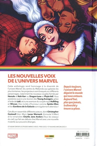 La communauté LGBT+ de Marvel prend le pouvoir ! Dragon-Lune, Hercule, Wiccan, Hulkling et bien d'autres s'élancent dans de nouvelles aventures totalement inédites, dans un album qui célèbre toute la diversité de la Maison des Idées. Cet enthousiasmant titre recueille le long one-shot consacré au couple gay le plus célèbre de l'univers Marvel : Wiccan et Hulkling. Il présente aussi une série d'histoires plus courtes imaginées par les auteurs les plus progressistes de l'industrie, parmi lesquels Christopher Cantwell (Iron Man), Alyssa Wong (Doctor Aphra) ou encore la romancière à succès Charlie Jane Anders (Prix Locus 2022 du meilleur roman pour jeunes adultes) qui crée ici un nouveau personnage !