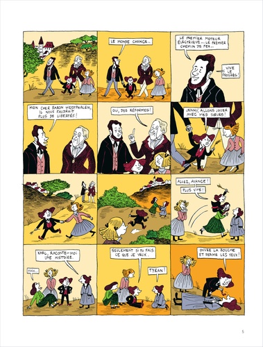 Marx, une biographie dessinée est un one shot signé Corinne Maier et Anne Simon ; de la découverte de la philosophie hégélienne à la rédaction du Manifeste du parti communiste en passant par les révolutions de 1848, les auteurs nous emmènent à la rencontre du père du communisme. " Je m'appelle Karl Marx. On m'a surnommé "le Diable", car j'ai voulu mettre à mort le capitalisme. Il faut libérer l'humanité de la misère et des inégalités. Votre crise ressemble à celles que j'ai vécues. Alors une seule solution : la révolution ! ". Un album pour connaître la genèse du communisme.